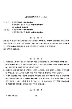 강제집행정지결정신청서(제3자이의의소-화해조서정본)