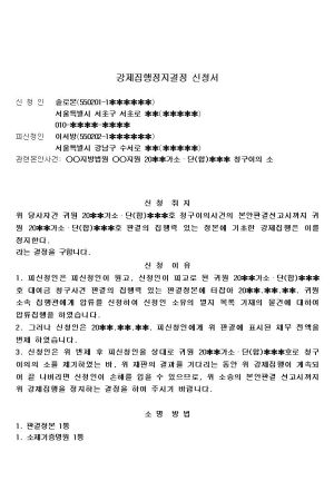 강제집행정지결정신청서(청구이의의소-판결정본)