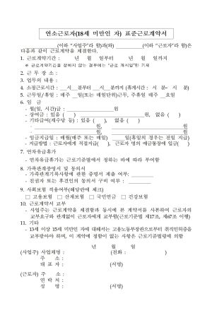 연소근로자(18세 미만인 자) 표준근로계약서
